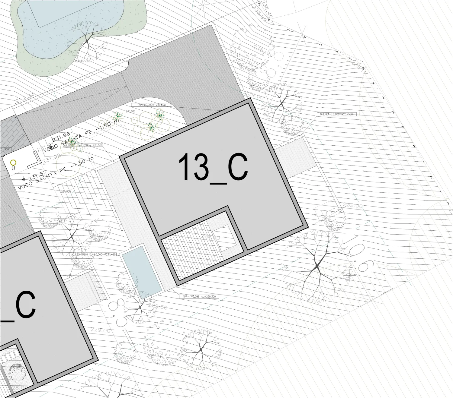 You can enjoy active relaxation in the adjoining outdoor pool, heated by its own heat pump. Absolute living comfort is ensured by the above-standard technical facilities of the house, making living easier than ever. Underfloor heating is planned throughout the house. All living rooms are equipped with air recuperation with the possibility of individual settings. Cooling will be placed in the ceilings. The house will be prepared for the installation of photovoltaics.